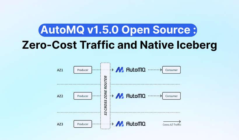 AutoMQ 1.5.0 brings powerful new features—from zero cross-AZ traffic cost and native Kafka-to-Iceberg mapping (Table Topic) to Bitnami Helm chart support and cloud-native consumer rebalancing—all designed to simplify your architecture, cut costs, and enhance scalability.