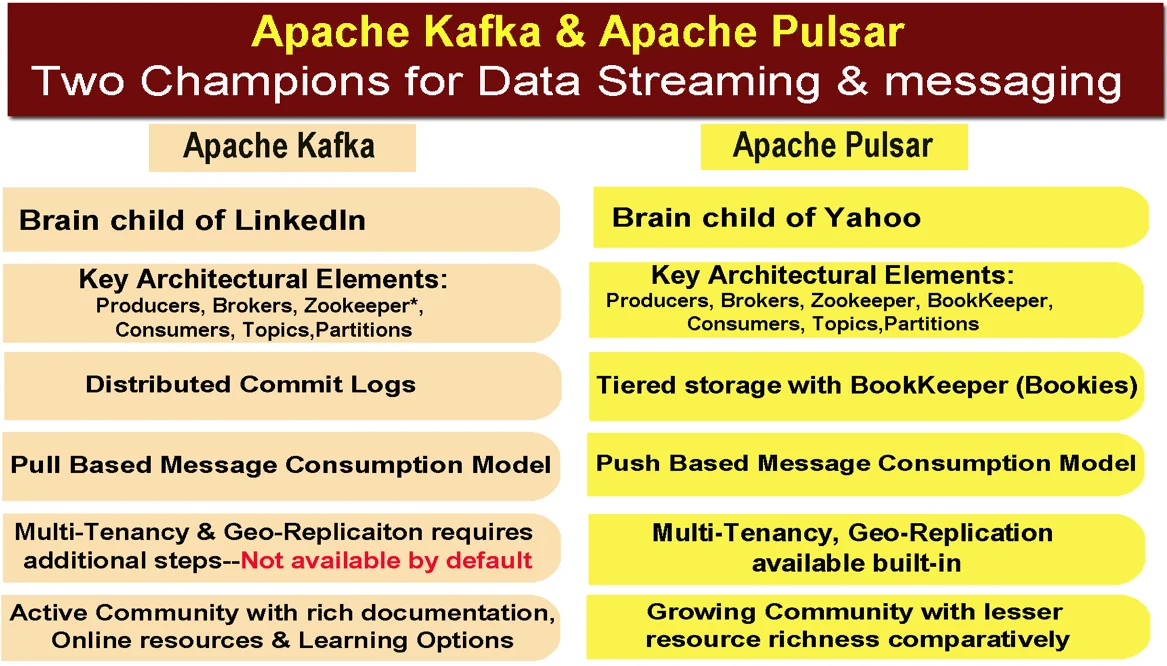 Apache Kafka and Apache Pulsar are powerful distributed messaging platforms that serve as the backbone for modern data streaming architectures. This comparison examines their key differences, architectural approaches, performance characteristics, and use cases to help you make an informed decision for your data pipeline needs.