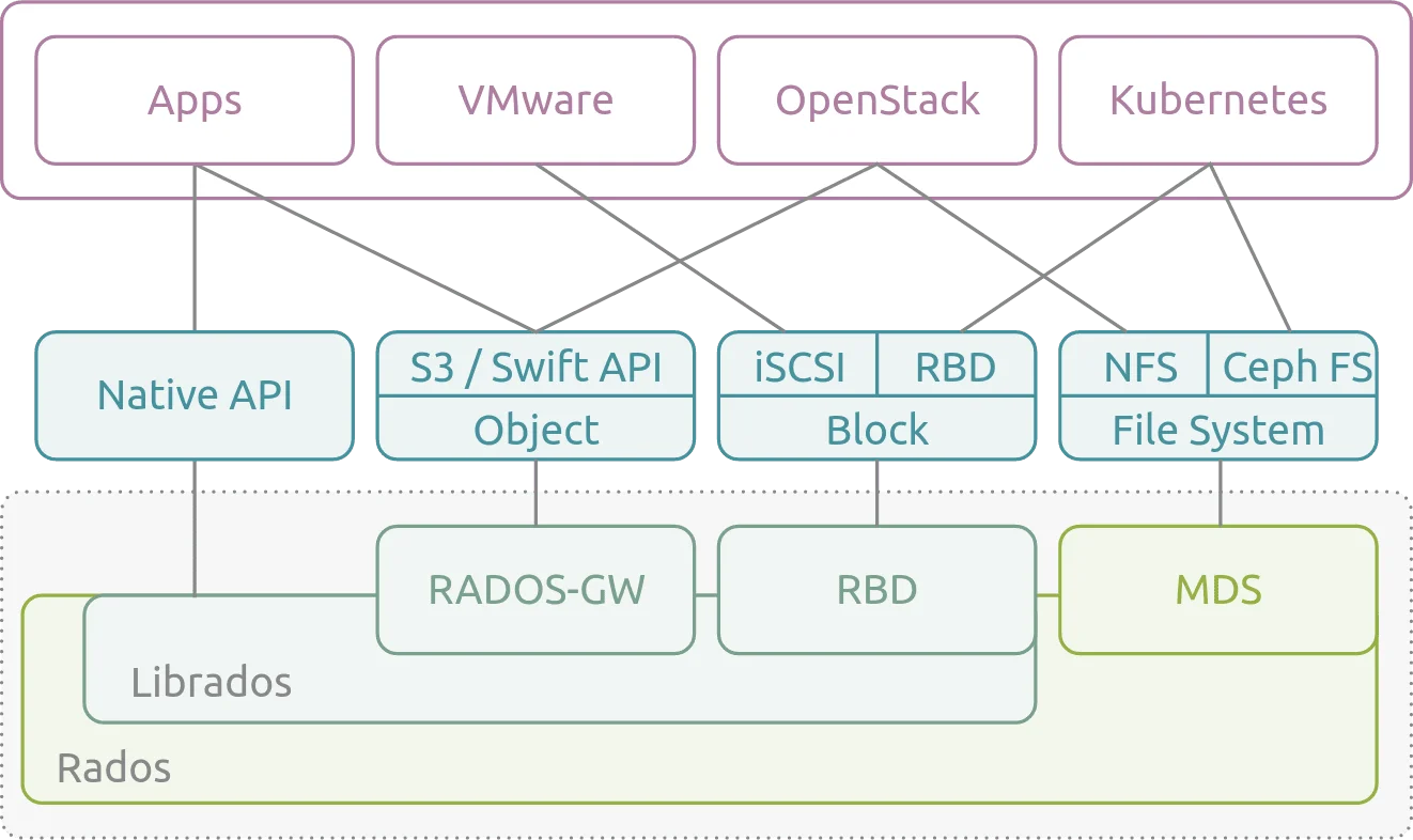 Ceph[1] is an open-source distributed object, block, and file storage system. It originated from Sage Weil's doctoral dissertation in 2003 and was released under the LGPL 2.1 license in 2006. Integrated with the Linux kernel KVM, Ceph is included by default in many GNU/Linux distributions. Its uniqueness lies in providing storage capabilities across objects, blocks, and file systems, catering to various storage needs.