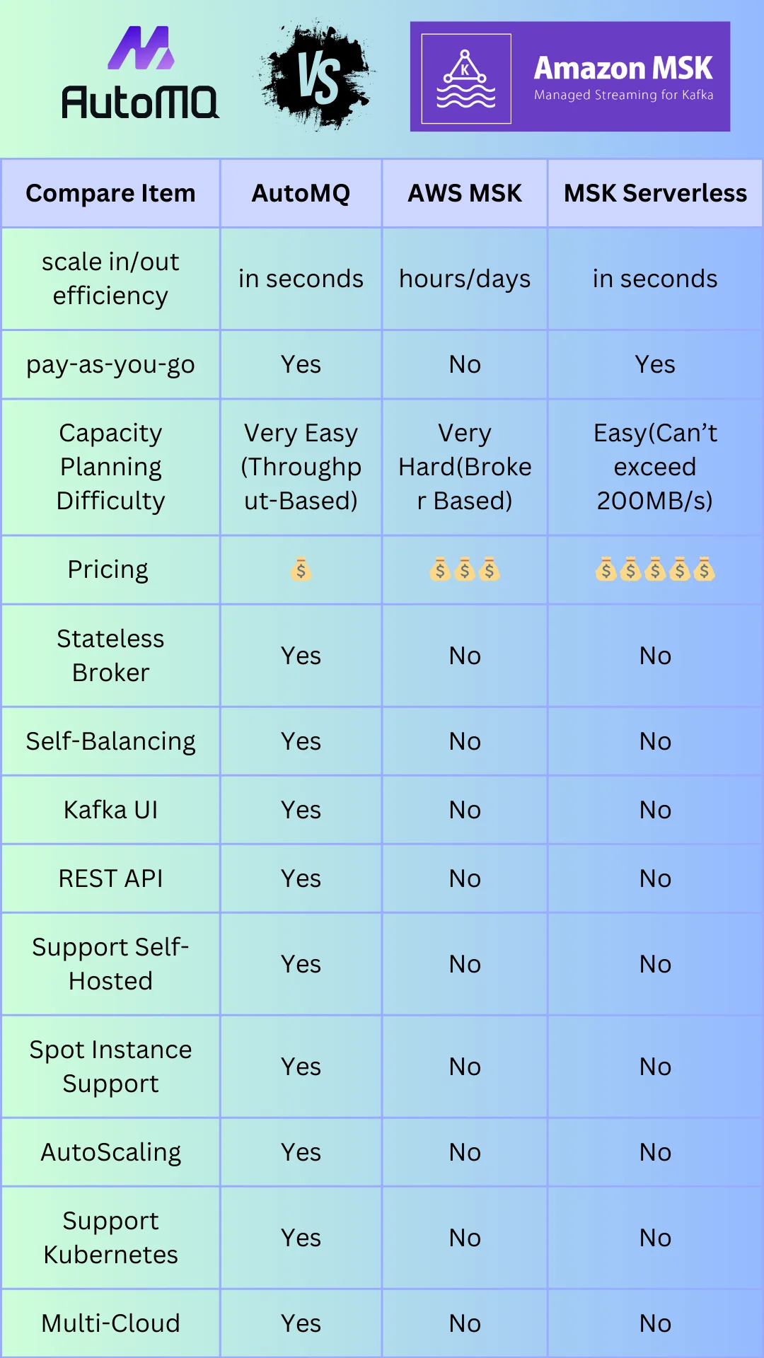 AutoMQ > AWS MSK = AWS MSK Serverless