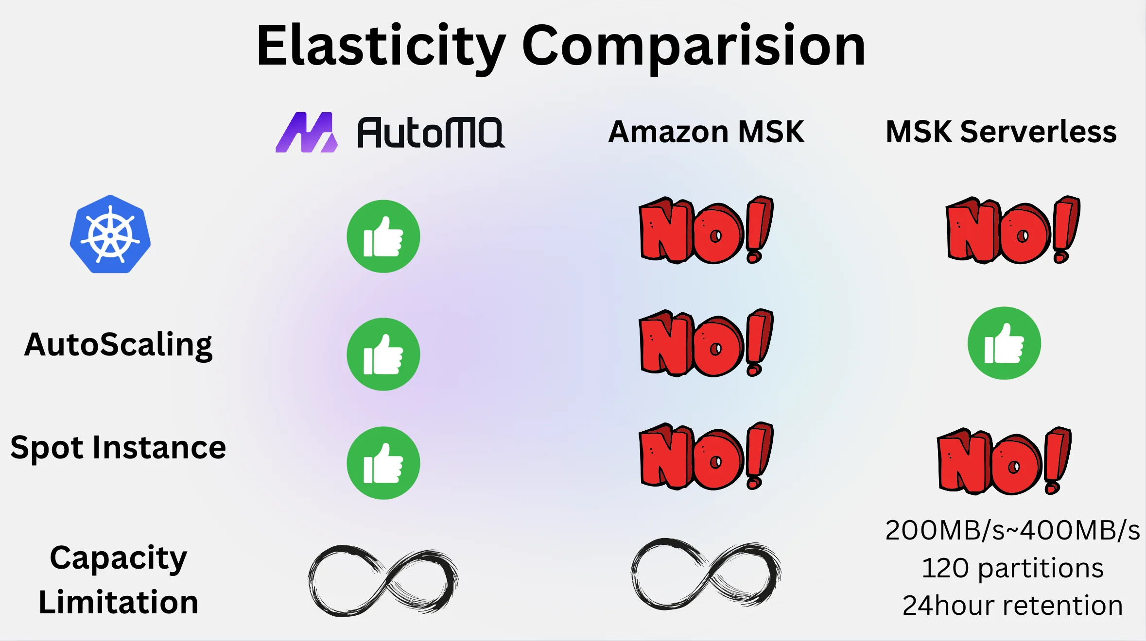 AWS MSK Serverless : MSK Serverless is essentially pseudo-elastic because its elasticity is fundamentally based on AWS pre-allocating capacity for users, creating the illusion of being serverless. Since the underlying architecture is still the integrated storage-compute model of Apache Kafka, there is no real technological breakthrough. The costs incurred by this pre-allocated capacity are ultimately reflected in the user's actual bill. Several objective facts demonstrate the pseudo-elastic nature of MSK Serverless.