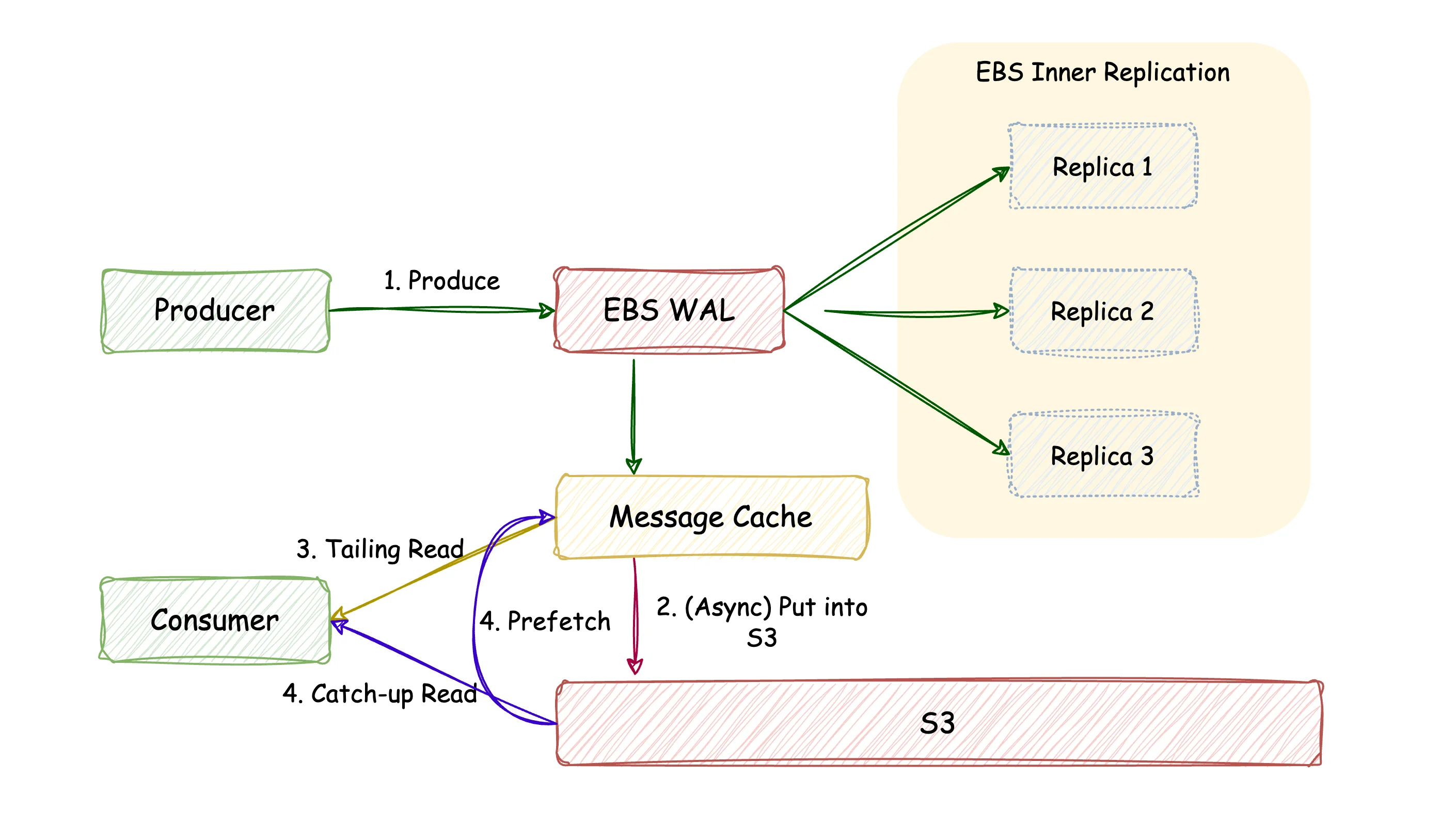 Apart from the regular batching and uploading to S3, during events such as partition reassignment or node failover, AutoMQ will force-upload cached partition data to S3 to ensure new nodes can read the complete data. In these scenarios, the priority of maintaining upload timeliness outweighs smooth traffic. As AutoMQ employs a single-threaded model for data uploading, it requires dynamic adjustment of uploading tasks in such scenarios to complete them as quickly as possible and avoid blocking the partition reassignment or node failover process. To meet these requirements, AutoMQ has implemented an asynchronous rate limiter with dynamically adjustable rate limits based on Guava's RateLimiter: for regular message processing, it calculates a smooth upload rate that matches the send rate; during special scenarios requiring accelerated uploads, the rate limit can be increased to ensure timely uploads.