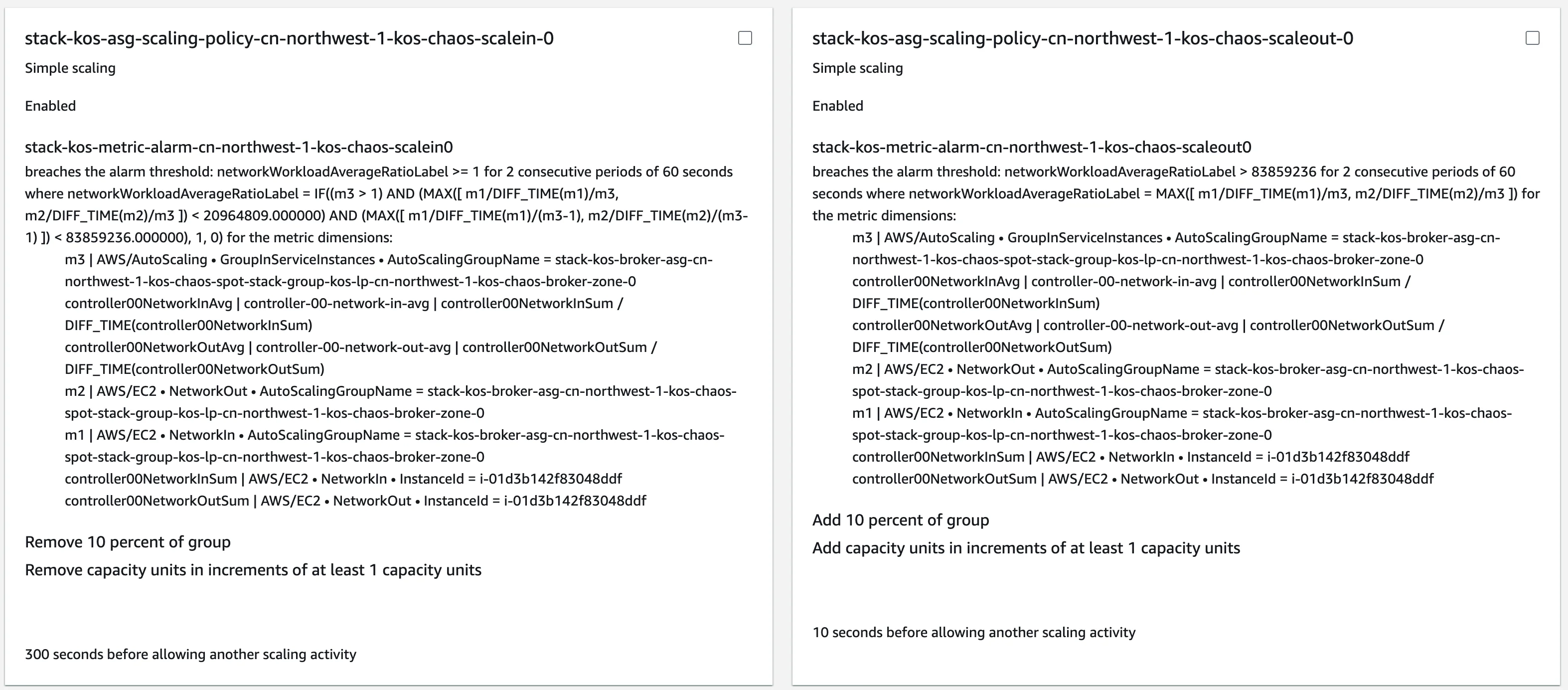 In the custom target tracking strategy, the step sizes for scaling up and down are proportionally adjusted, ensuring uniform scaling efficiency across varying cluster sizes. The elasticity policies displayed on AWS ASG are as follows.