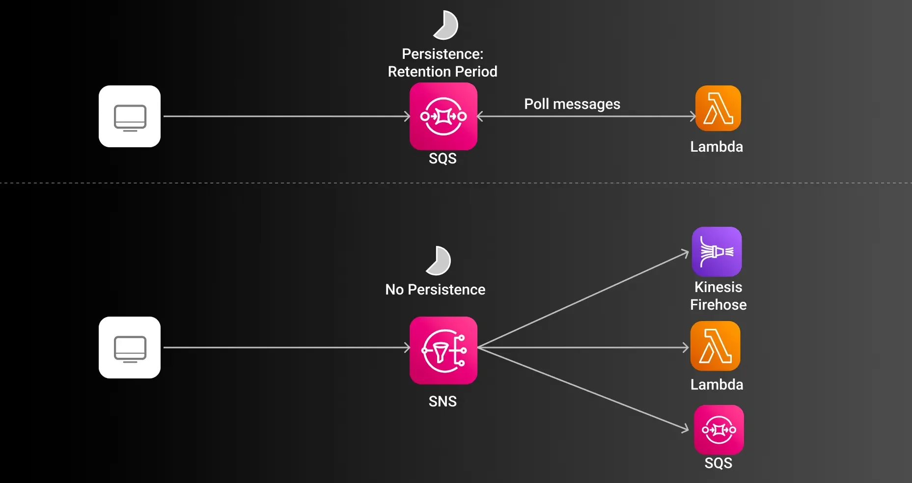| Message Retention | 1 minute to 14 days | No long-term storage |