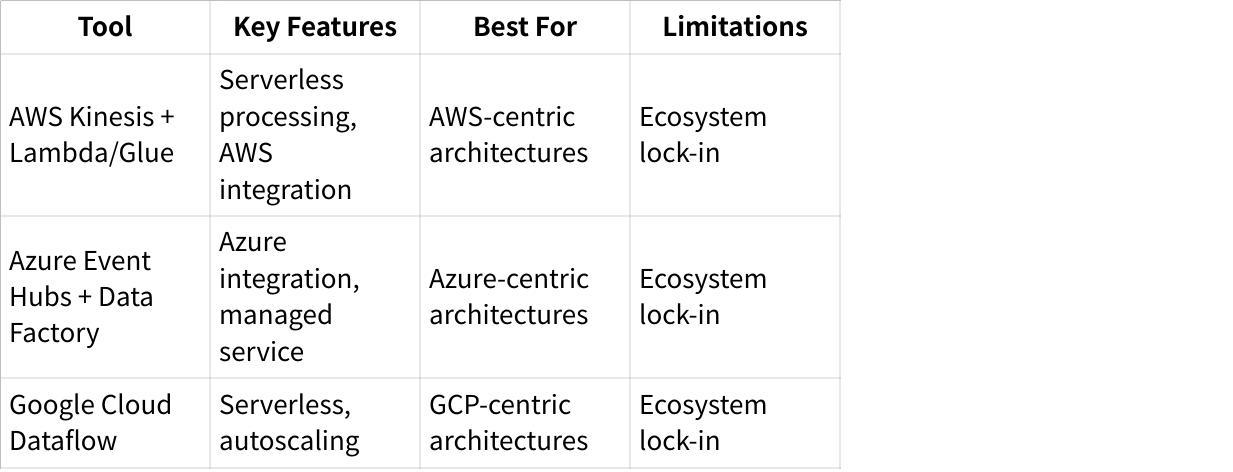 Major cloud providers offer their own Kafka-compatible streaming ETL solutions: