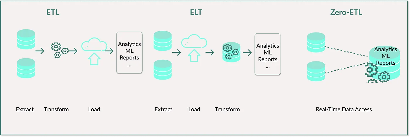 In summary, while ETL and ELT are established methods with specific strengths, Zero-ETL represents a modern approach focused on speed and efficiency, eliminating traditional data integration complexities.