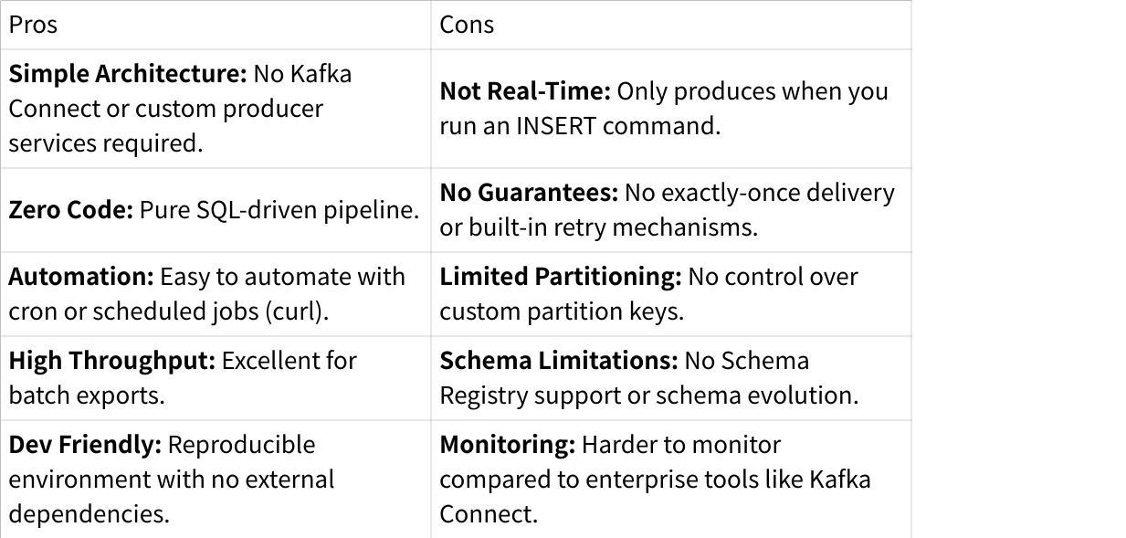 This is the core feature: ClickHouse acting as a Kafka producer using the Kafka Engine.