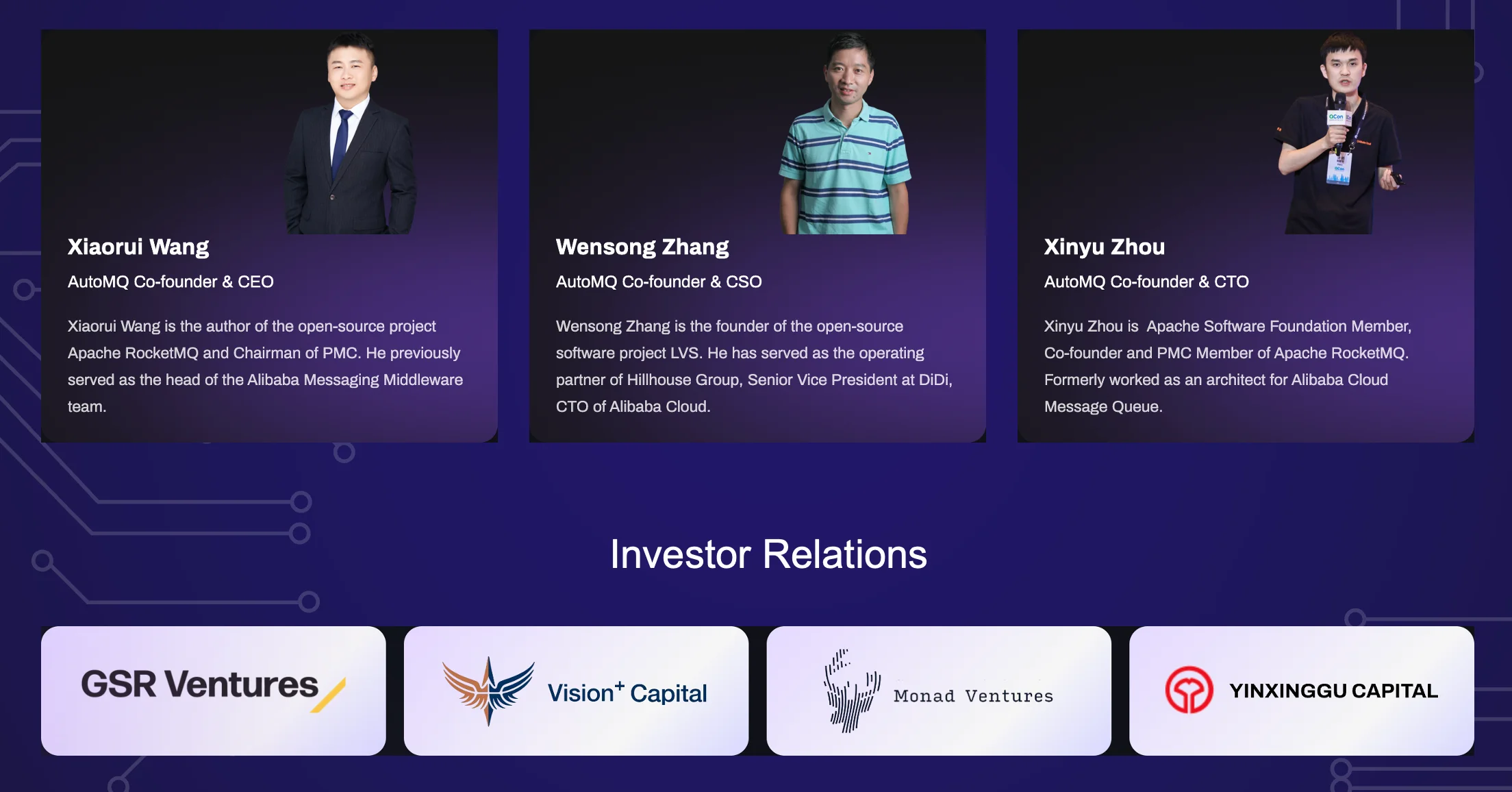 Since its establishment in 2023, AutoMQ has experienced two seed rounds of financing, raising nearly $10 million, and has successfully brought on board four strategic investors. GSR Ventures and Vision Plus Capital were the pioneering investors who saw potential in AutoMQ during our first round of financing. We are particularly grateful for the support from Vision Plus Capital, whose chairman, Eddie Wu, is the incumbent CEO of Alibaba Group. His belief in our mission and vision has been a strong testament to our capabilities and potential. We deeply appreciate Eddie Wu's support and continue to strive to make our investors proud.
