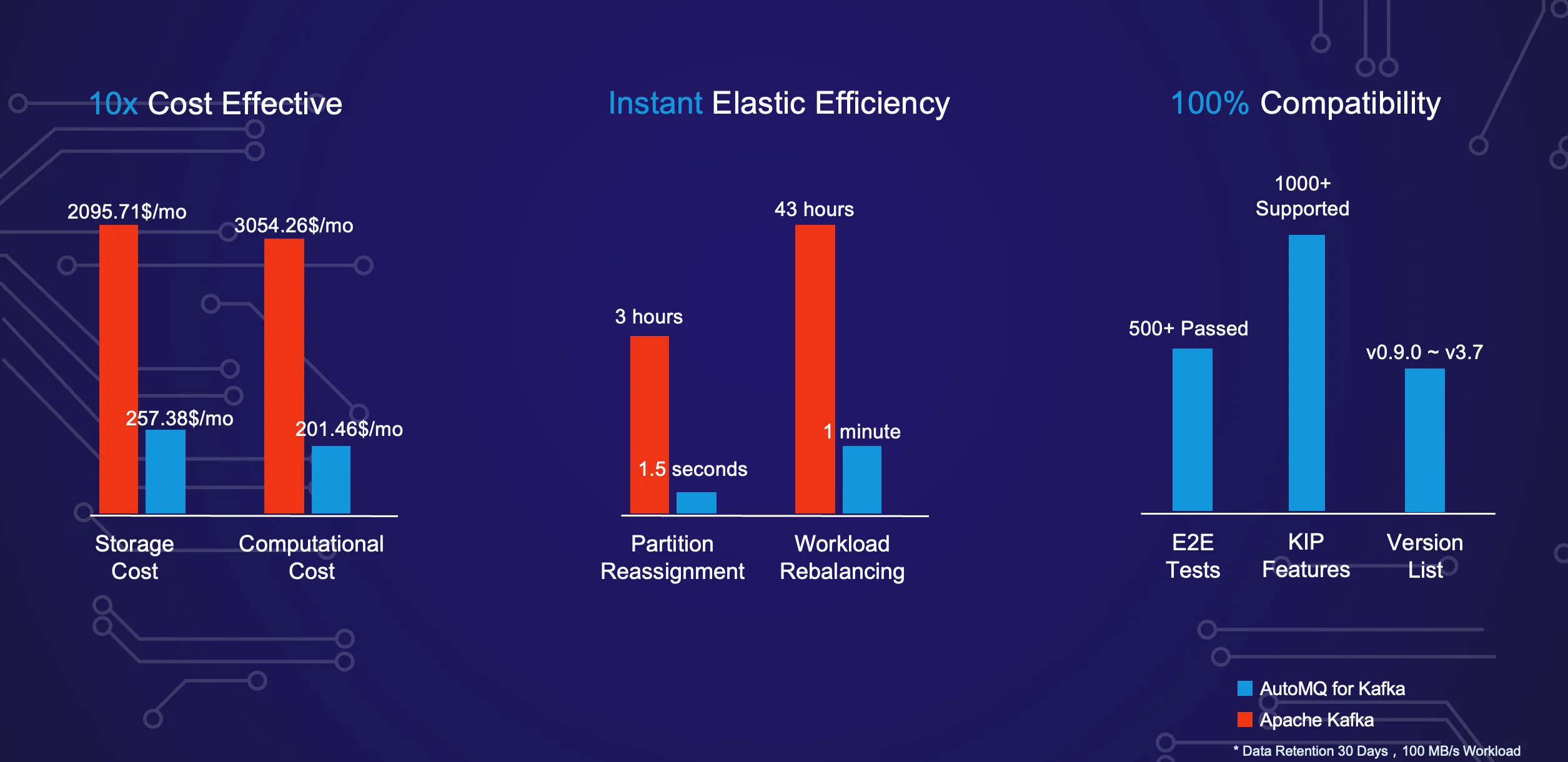 AutoMQ's innovative architecture brings unprecedented cost savings in the realm of data-intensive software. Its design focuses on optimizing both computational and storage resources, resulting in a cost advantage that's nearly tenfold compared to traditional solutions.