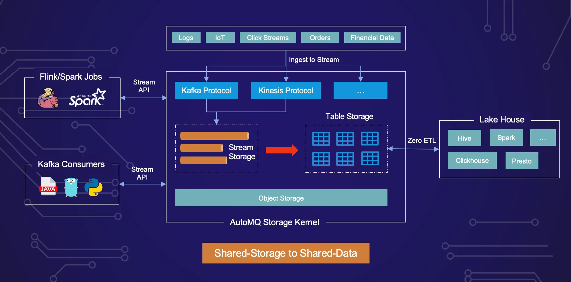 Finally, we'll peer into AutoMQ's future, where it plans to transition from the traditional shared-storage model to a more dynamic shared-data approach by integrating stream data into data lakes. This paradigm shift promises to enhance AutoMQ's capabilities, breaking down data silos and enabling comprehensive data access.