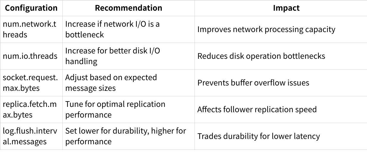 Understanding these components is crucial for identifying bottlenecks and optimizing specific areas of your Kafka deployment.