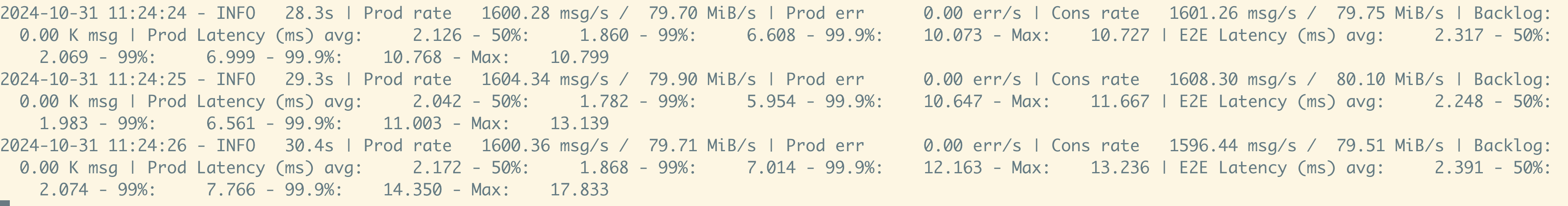 Producer Latency : Time for message production acknowledgment