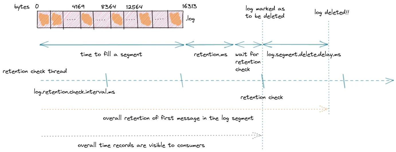 Retention is segment-based, not message-based
