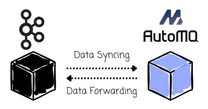 - After the rolling upgrade (will be covered soon), some producers start sending messages to AutoMQ, while remaining producers still process data to Kafka. At this time, data also needs to be forwarded from AutoMQ to Kafka.