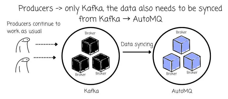- When the producers are operating only on Kafka, the data only needs to be synced from Kafka → AutoMQ.