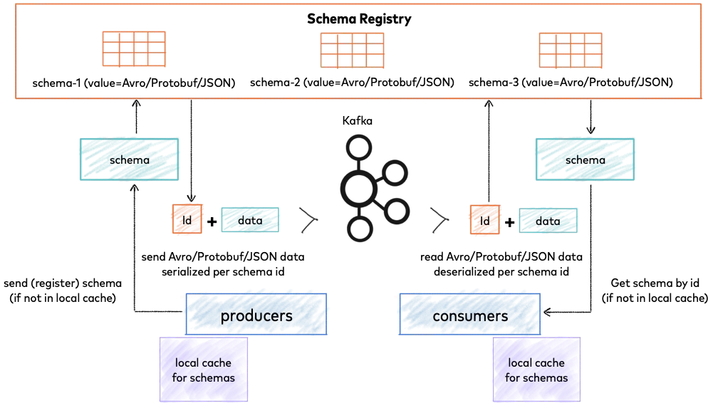 Schema Caching : Both producers and consumers cache schemas locally to minimize Schema Registry calls, only contacting it when encountering new schema IDs.