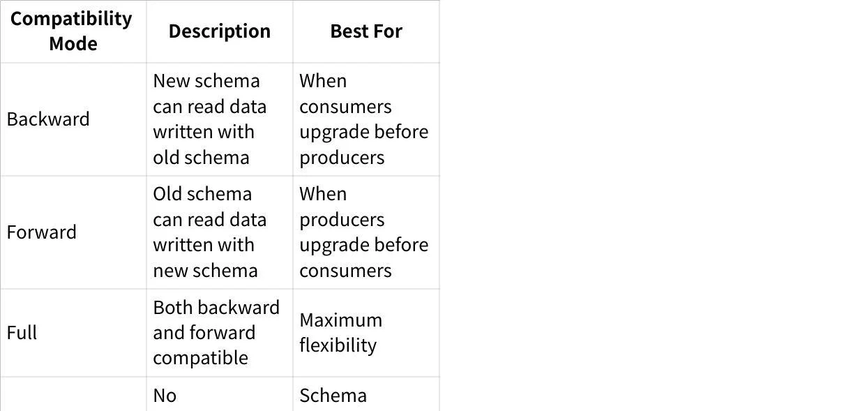 Schema Registry supports different compatibility modes to control schema evolution: