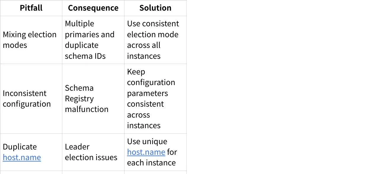 Use a virtual IP (VIP) : Place in front of Schema Registry instances for easier client management
