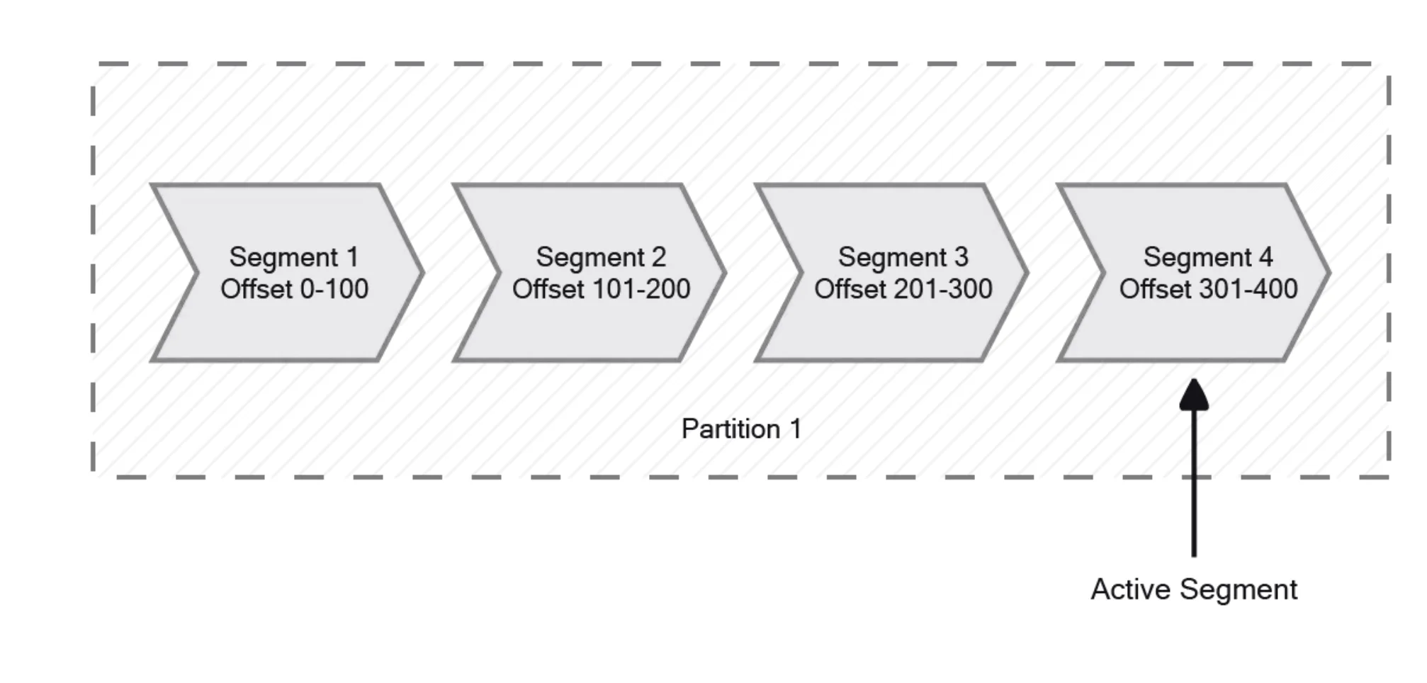 Inside partitions, Kafka divides data into segments, which are files in Kafka's directory structure. Only one segment is active at a time, and new data is written to this active segment. When a segment reaches a certain size or age threshold, it is closed, and a new active segment is created. This segmentation allows for efficient storage management and cleanup of older data. Administrators can control segment management through configuration parameters like 'log.segment.bytes' (maximum segment size) and 'log.segment.ms' (maximum time a segment remains open).