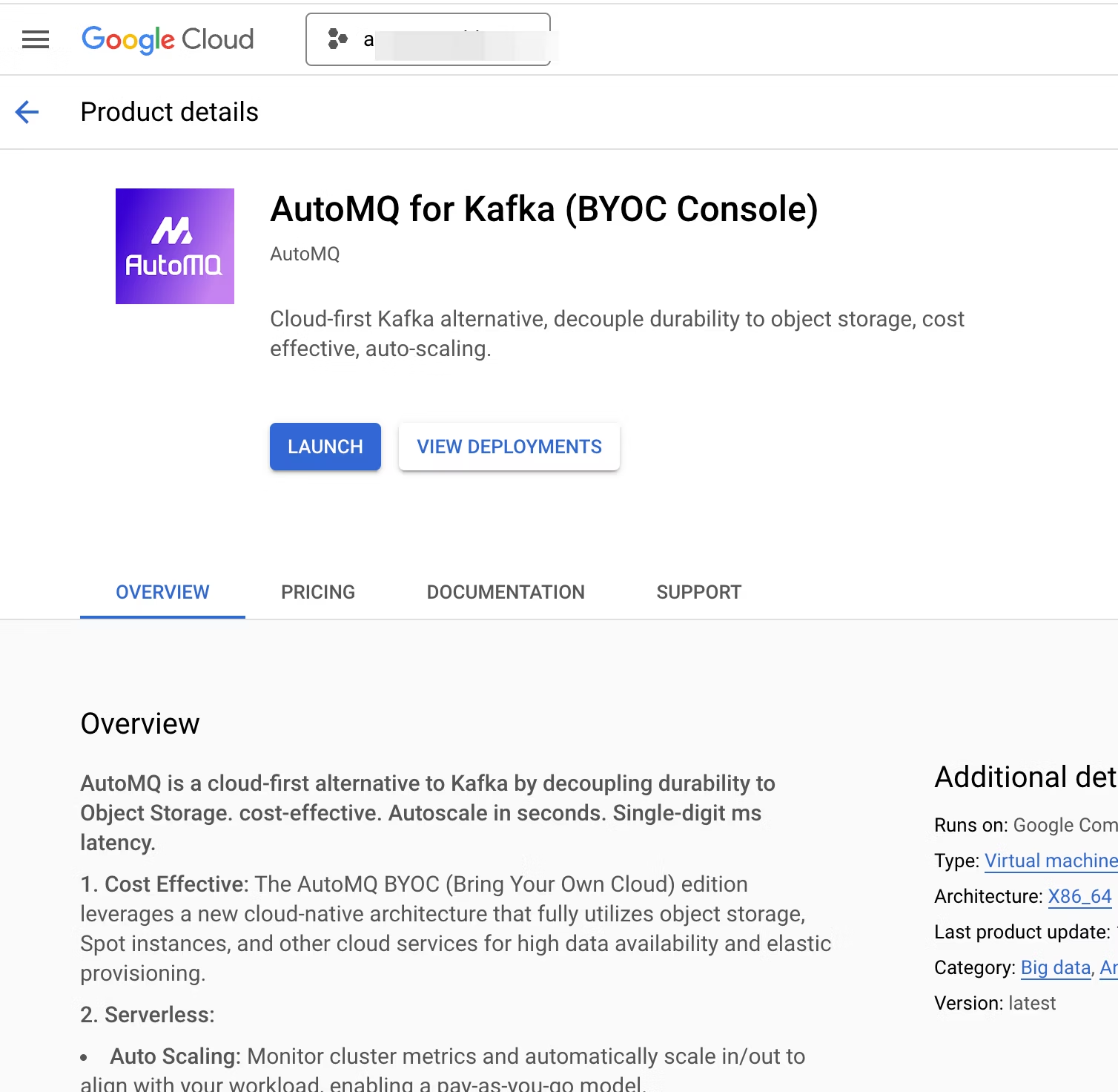 Launch Automq from The GCP Marketplace