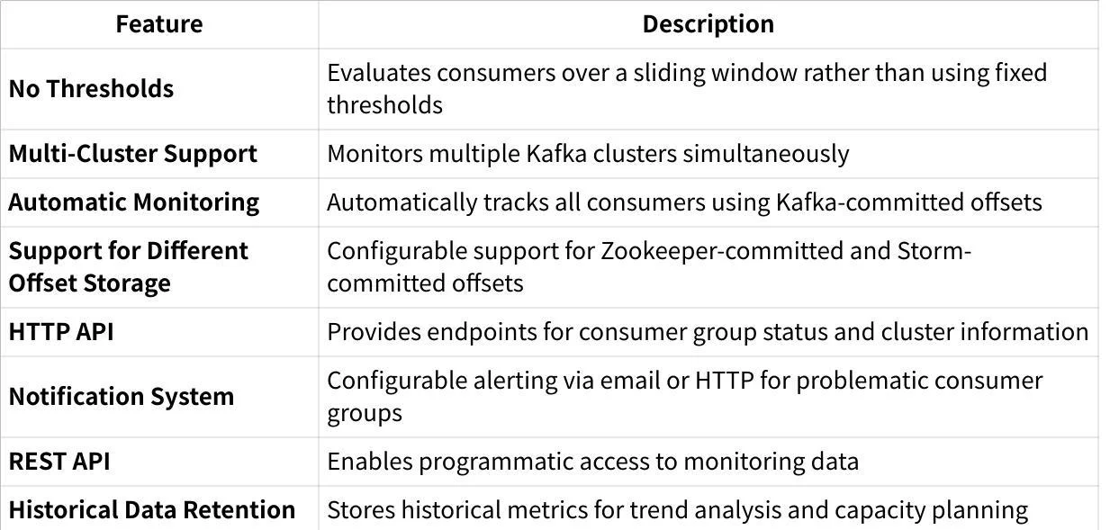 Burrow offers a robust set of features that make it particularly valuable for Kafka monitoring: