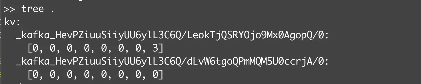 It can be seen that the snapshot information related to the Kafka Producer is stored at offset=4, which records the producer's idempotence and transaction-related metadata. At offset=5, the metadata of the entire Partition is stored, where both startOffset and cleanerOffset are 0, and recoverOffset is 50540. (Corresponding to the concept of single partition data maintenance in Kafka) The current snapshot did not stop the broker, hence, the status of cleanshutdown is false; normally, this status would be true if the shutdown was clean.
