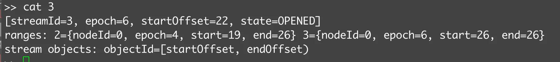 streamId=3, startOffset=4, endOffset=6, recordCount=2, startPosition=0, size=262