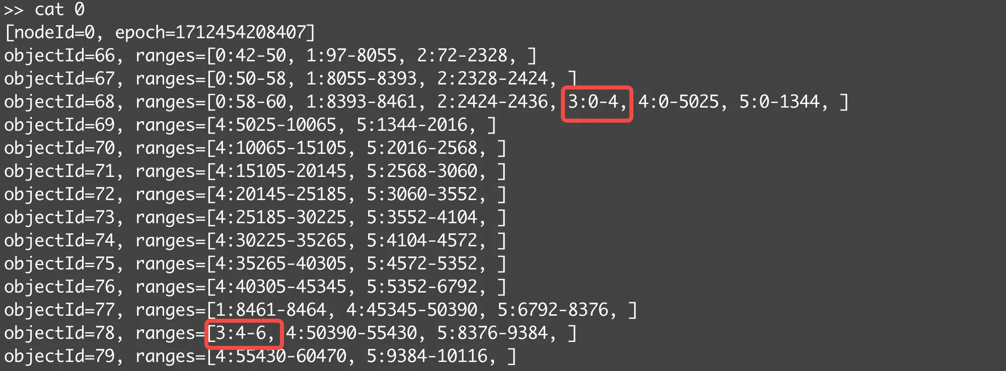objectId=78, ranges=[3:4-6, 4:50390-55430, 5:8376-9384, ]