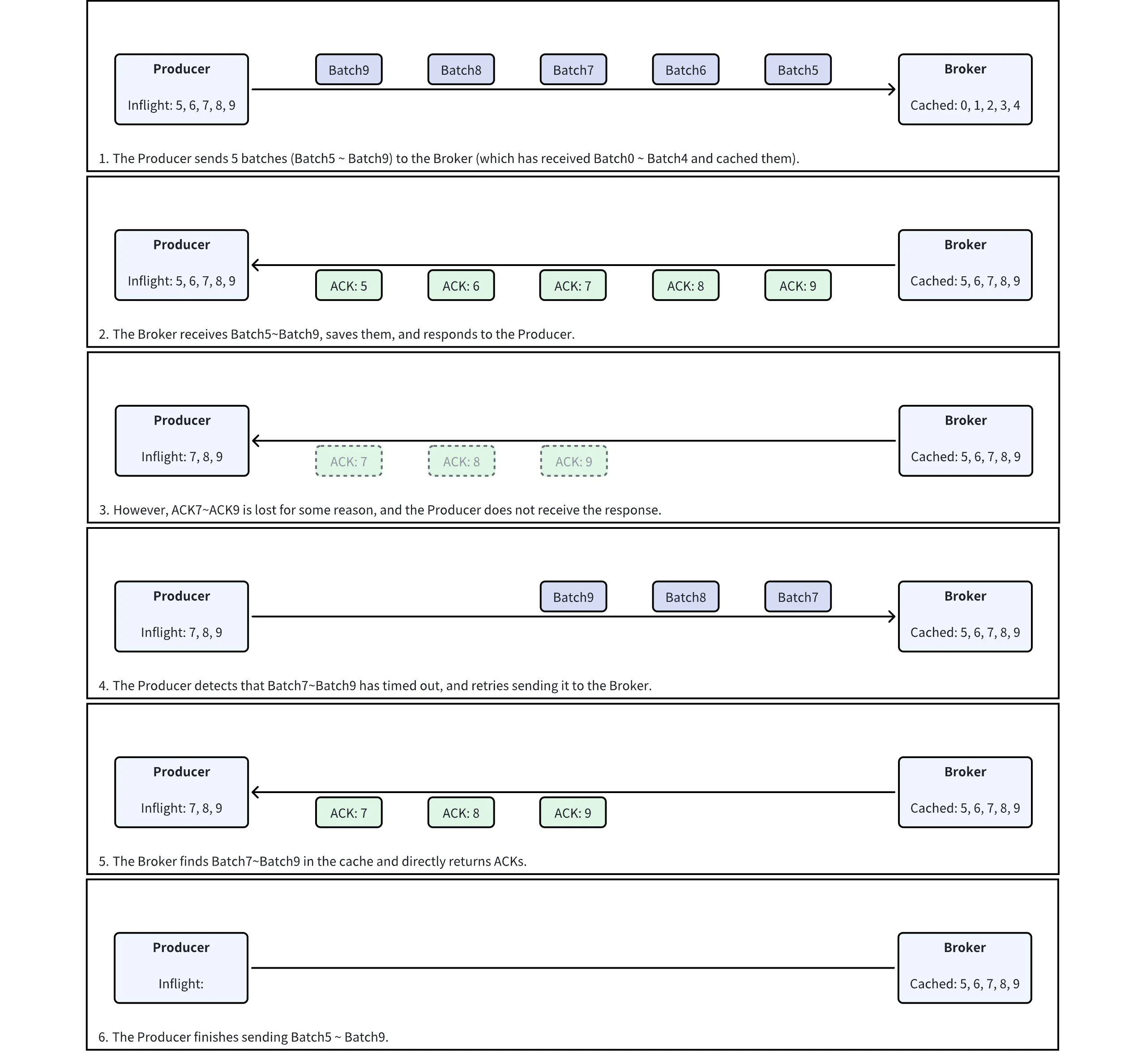 The process for an idempotent Producer to send a Batch is as follows: