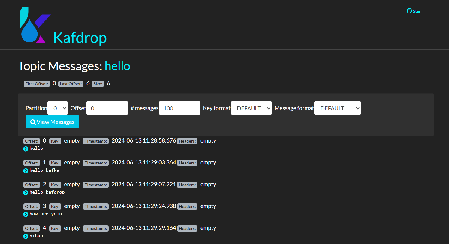 [1] Kafdrop: https://github.com/obsidiandynamics/kafdrop