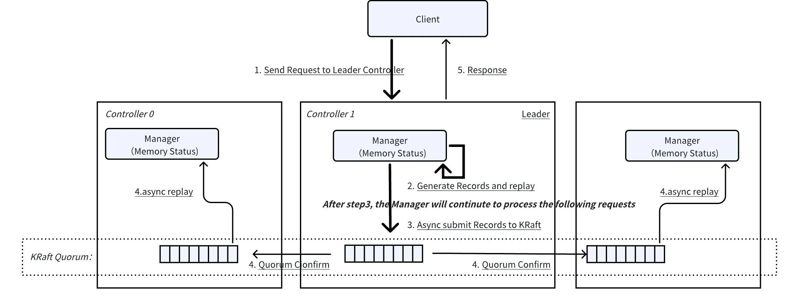 Replication : Follower controllers replicate these changes, ensuring consistency across the quorum.