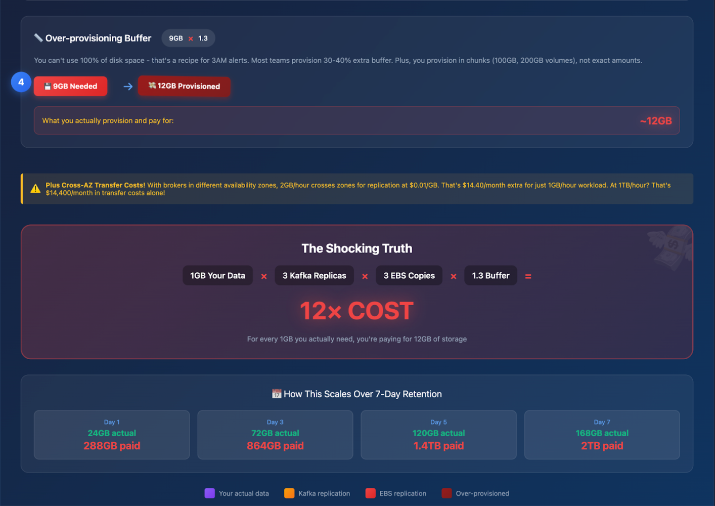 Day 7: 168GB actual data → ~2,016GB provisioned.