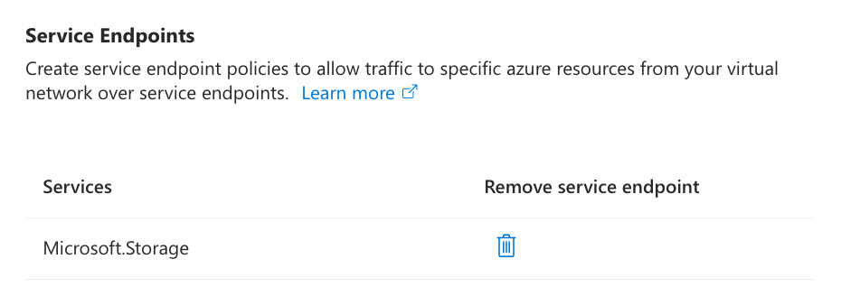 AutoMQ requires access to Azure Storage Service; therefore, all Subnets deploying AutoMQ must have the Storage Service Endpoint enabled. Refer to the diagram below and select Microsoft.Storage