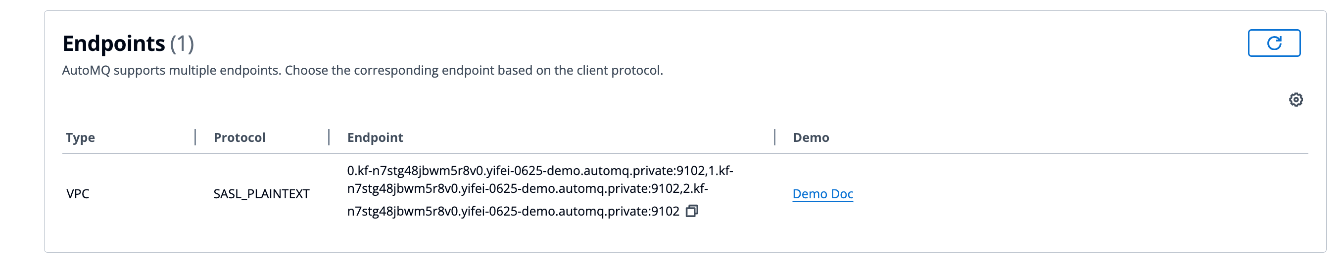 - After enabling SASL_SSL, access the instance details page to view the endpoint information.