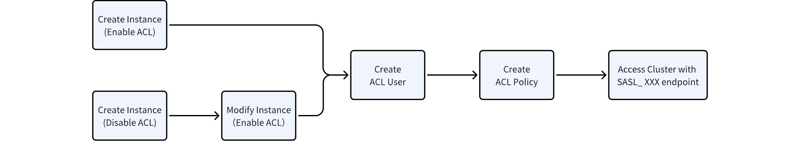 - When creating an instance, ACL is not enabled by default. At this time, clients can access the cluster anonymously via the PLAINTEXT protocol and have permissions for all operations.