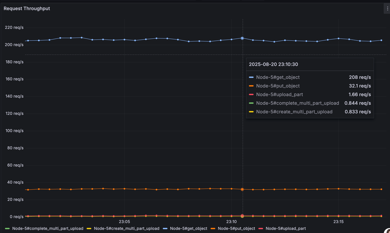 - S3 API:在该流量下,平均 Get 1,278/s、Put 202.662/s,成本为 $3,952 每月。