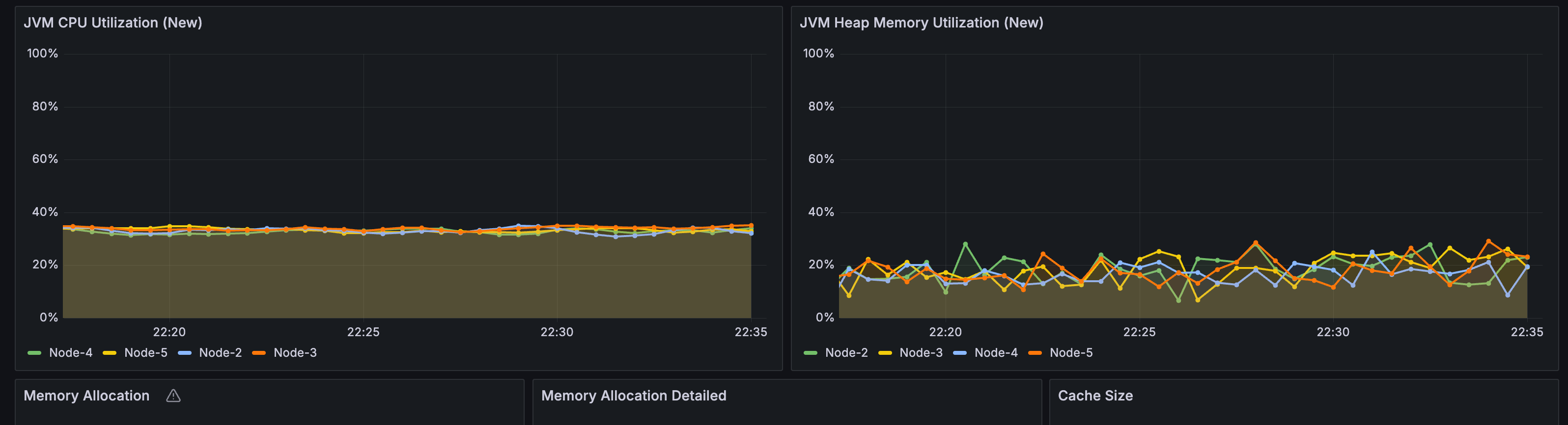 每个 AutoMQ Broker 的 CPU 水位为 50%。有充足空闲的 CPU 来应对流量尖刺和更多的小包请求。