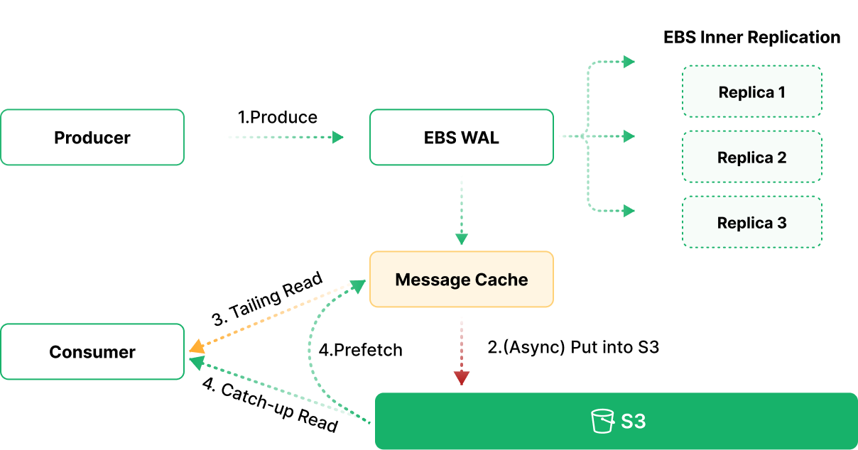 Moreover, eliminating the need to replicate partition data like Apache Kafka significantly reduces computing instance network usage and disk I/O.