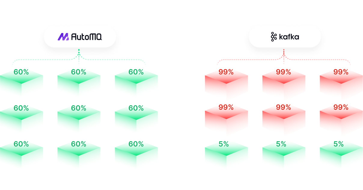 This not only poses significant operational and maintenance challenges for Apache Kafka, but also exacerbates the problem of over-provisioning. Many cost issues for AutoMQ service customers stem from resource over-provisioning.